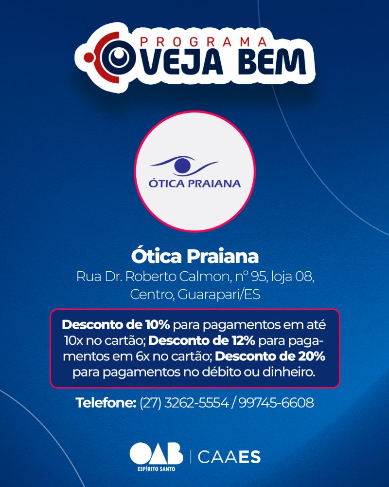 Programa Veja Bem: confira 7 óticas conveniadas com descontos exclusivos para a advocacia capixaba