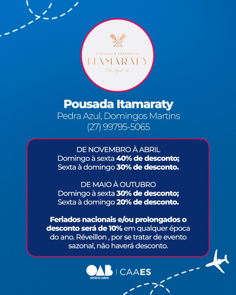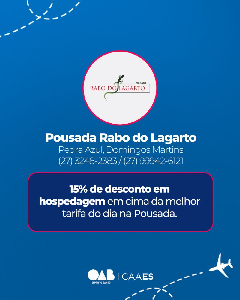 Ao todo, são oito opções de pousadas que oferecem descontos exclusivos, pensados para proporcionar momentos de descanso, lazer e convivência em família. A iniciativa reforça o compromisso da CAAES em promover bem-estar e qualidade de vida para a advocacia capixaba.